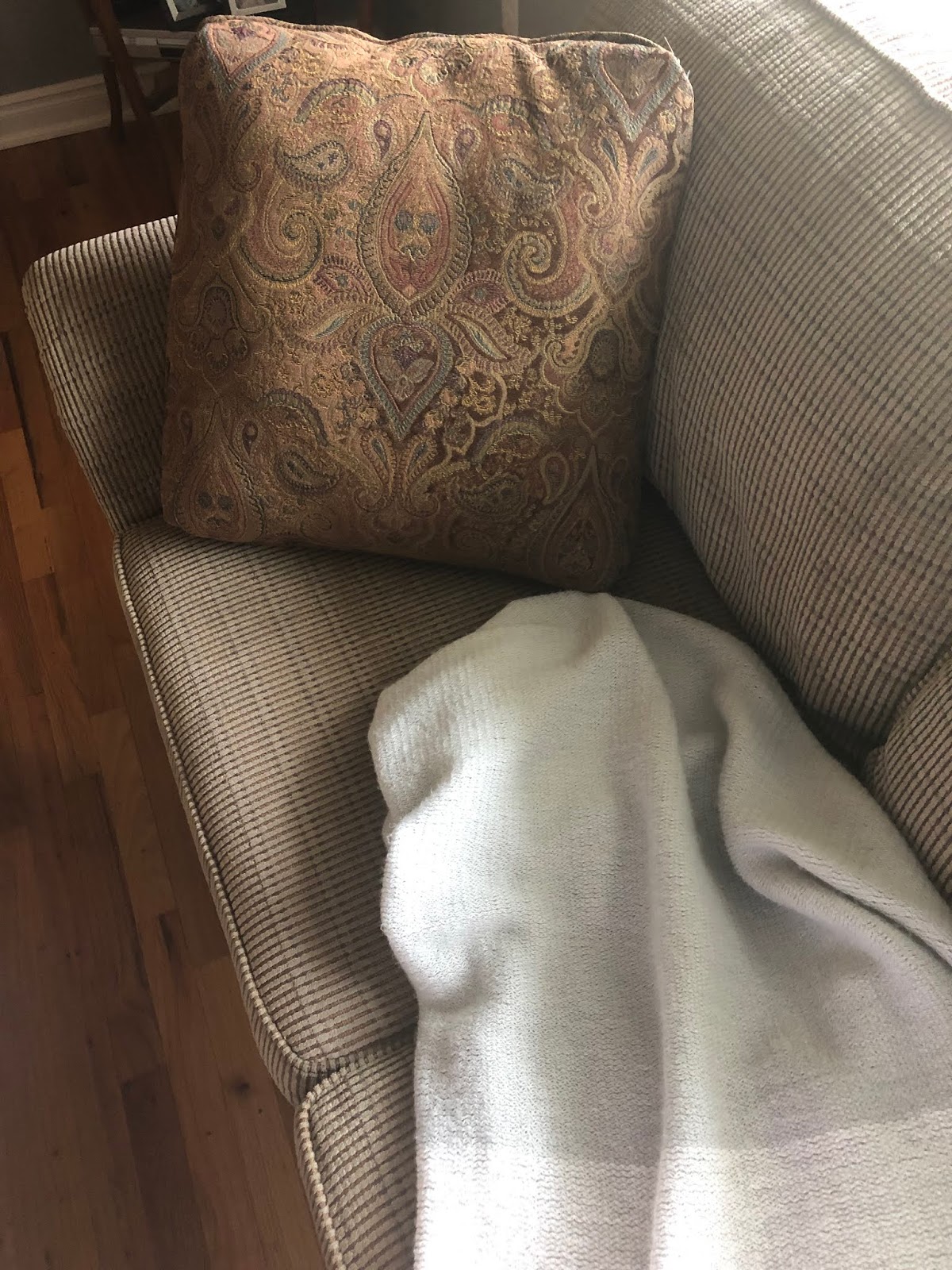 I was standing by my couch trying to get the best possible light, before snapping a picture, when my husband Steven came in. “Why are you taking a picture of our couch?”