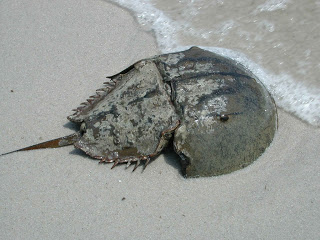I spotted something close to the tide line and walked over to it then crouched down. “It’s a horseshoe crab!” I cried waving Alex over to me.