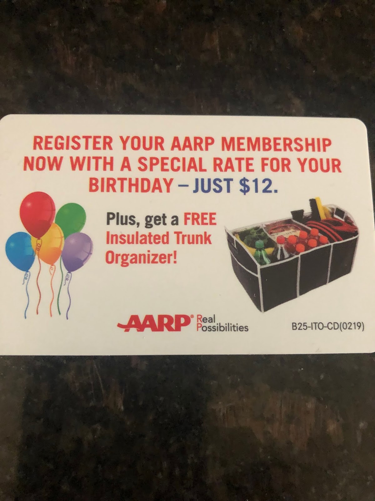 I held up the letter from AARP. “Nothing says you’re old like a letter from the American Association of Retired Persons telling you you can now be a card carrying member!” I pulled the card off the paper. “Look they’re even giving me a discount as a birthday gift!” I sighed as I tossed the letter on the table. “What a crummy birthday gift.” I sighed then picked up the letter again and read it out-loud. “Dear Kathryn, Enjoy your birthday.” I tossed the letter back on the table. “Enjoy your birthday.” I grumbled. “How am I suppose to do that when they’re telling me I’m old?”