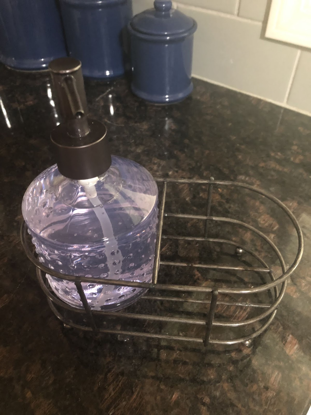 “Hey, what happened to the soap dispenser?” I called out. No one answered. I looked around the corner where Alex was laying on the couch. “Do you know where the other soap dispenser went?”