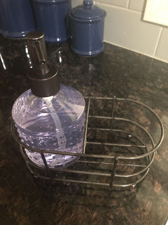Alex went to lay on the couch while I put the kettle on to make a cup of tea. I was getting a cup out of the cabinet when I happened to notice my dual soap dispenser, next to the sink, was missing one of the bottles.
