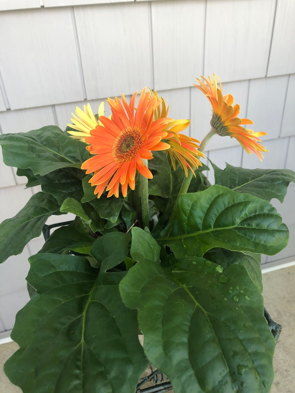 “That’s why I’m showing you the Gerber daisy now.” I turned around to peek out the window. “Nope, still a little droopy.” I turned back to face him. “I don’t want you to make the mistake of thinking they’re too far gone and throw them away.”
