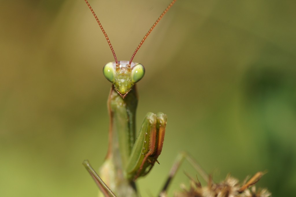“Eww.” I stood back up. “Did you see his little alien head turned and looked right at me!” I cried as I now watched the praying mantis slowly turn his head to look at Alex.