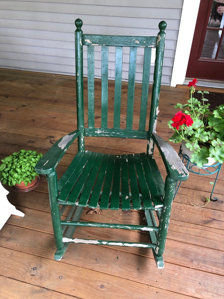 My husband Steven and I were standing on our back porch looking at my rocking chair. “Are you kidding me?” he asked. “The paint’s peeling off. It looks awful!”